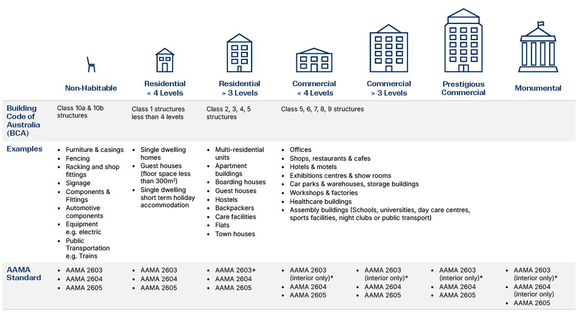 To ensure products are fit for these environments DGL recommends suitable products based on the AS3715 and AAMA testing standards. These standards provide a benchmark of product quality that are an assurance that your asset will be protected by a product fit for purpose. For complete details relating to these standards visit aamanet.org