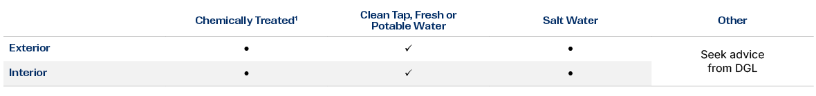 Please refer to the ‘Interior and exterior environments close to liquids other than the sea’ section for warranty implications for such environments.